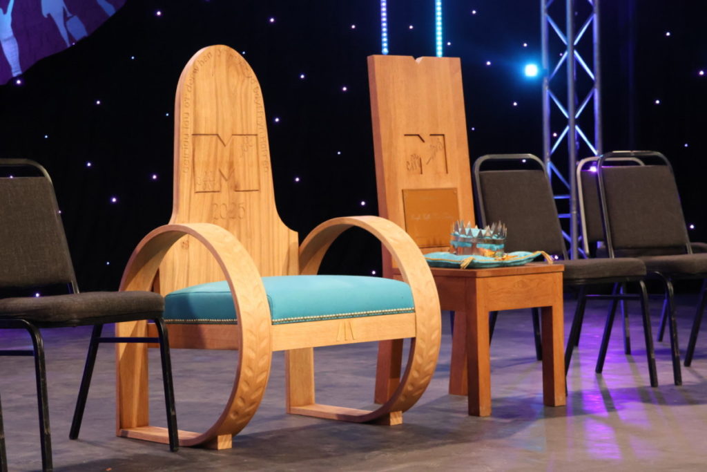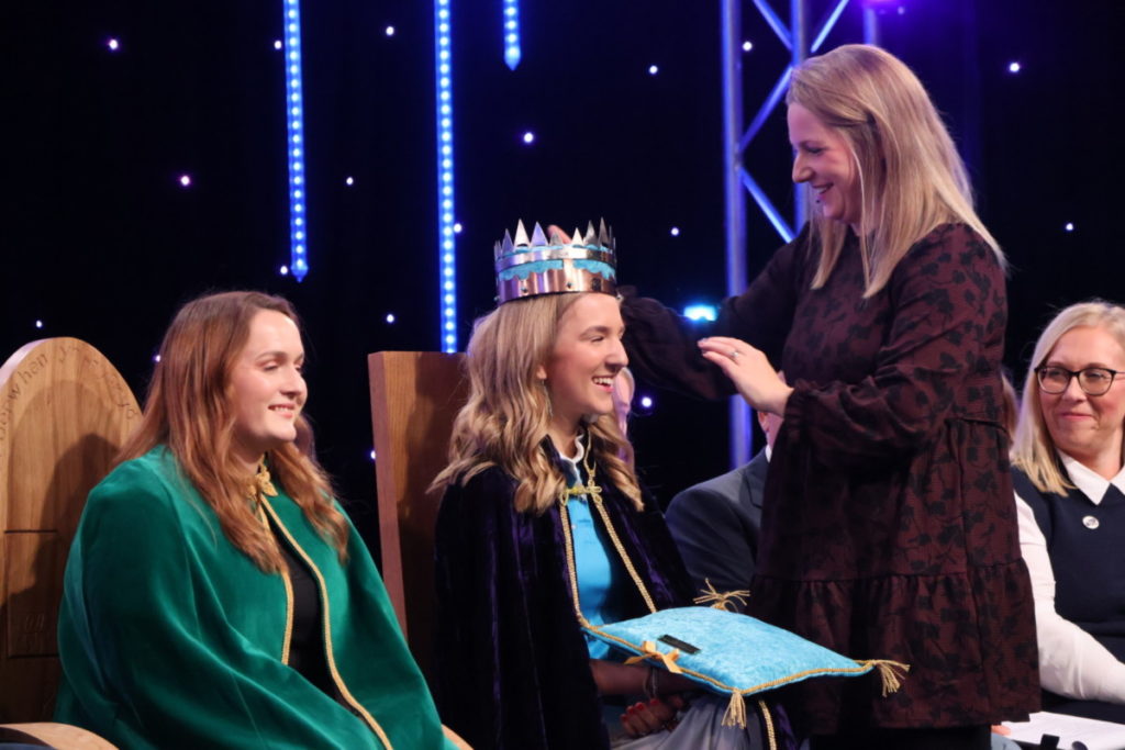 The Chair and Crown were generously sponsored by Coed y Bryn Nurseries and FUW Montgomeryshire. The beautifully crafted Chair, made by former Berriew YFC member Paul Philips, and the Crown created by David Dart and Robi Wood of Guilsield YFC.