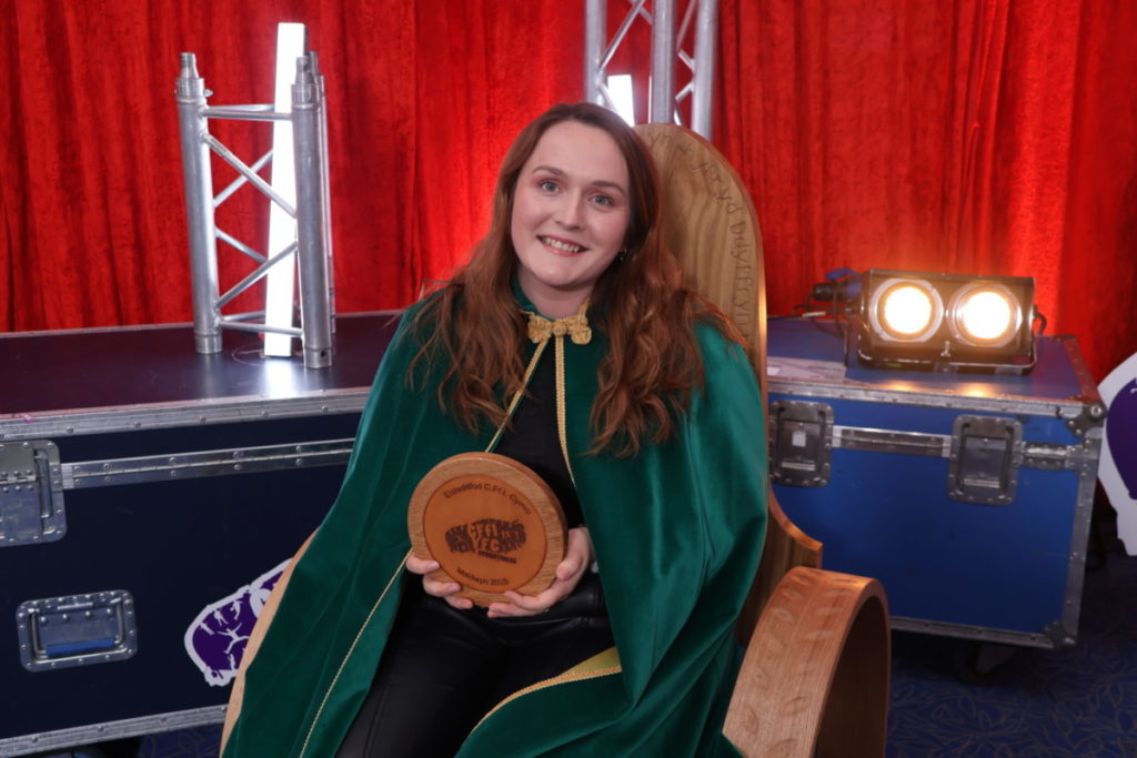 Mared, no stranger to success at YFC Eisteddfodau adds the 2025 Chair to an impressive list of achievements, including winning the Crown in 2022 and the Chair in 2024. Originally from Carno, she now lives in Caernarfon and teaches Welsh at Ysgol Glan Clwyd. Mared acknowledged the influence of key mentors and supporters, including the late Noah Parry, Delyth Medi, Gwen Edwards, her family, and her partner.